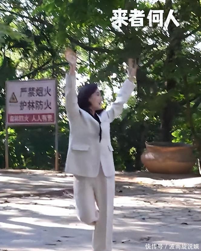 她杀青那天穿白西装。